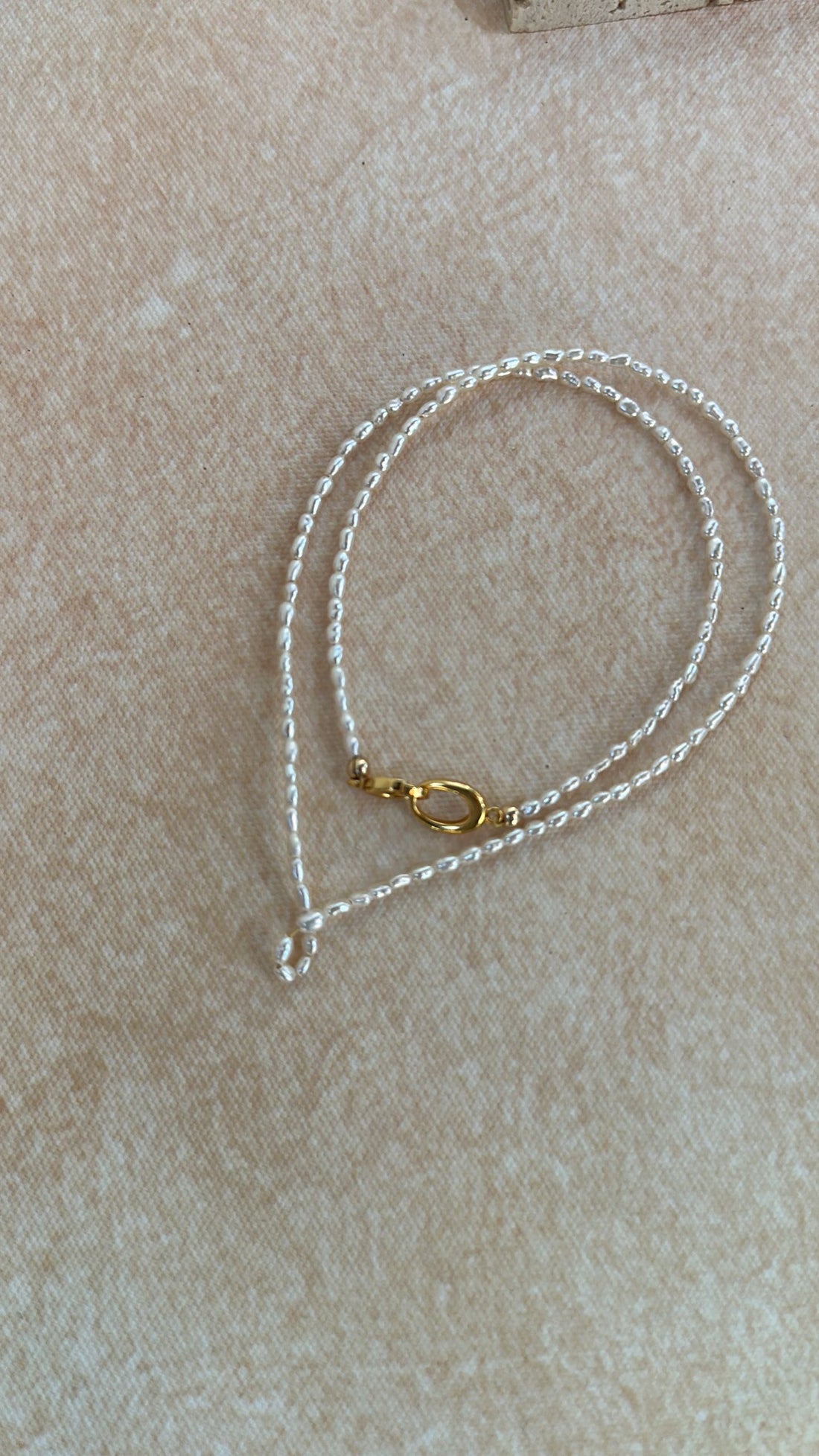 18k gold-plated silver 14k gold-filled bead Length: 40cm A quiet loop of light, timeless and...